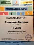 Диплом за 3 место в номинации «Хип-хоп соло»