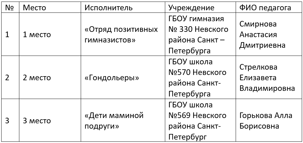 1. ГБОУ гимназия № 330 Невского района Санкт – Петербурга команда «Отряд позитивных гимназистов»