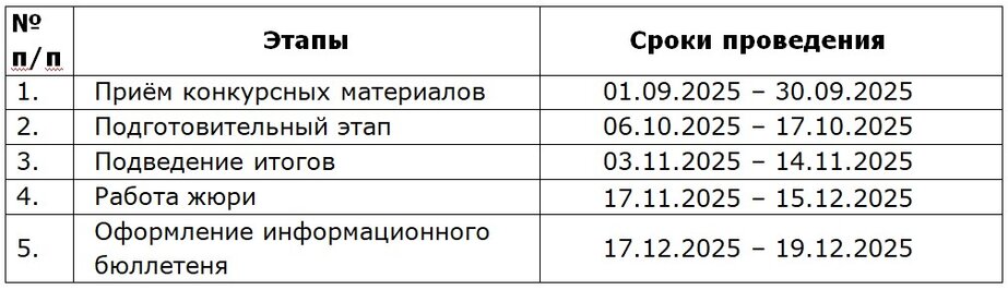 Конкурс реализуется в период с сентября по декабрь 2025 года.
